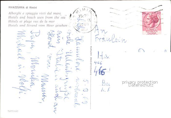 old postcard Rivazzurra Hotels und Strand postalisch gelaufen Erhaltung siehe scans