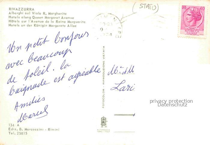 74026540 old postcard Rivazzurra IT Alberghi sul Viale R. Margherita postalisch gelaufen Erhaltung siehe scans [FriedD77] KatCode: 11240