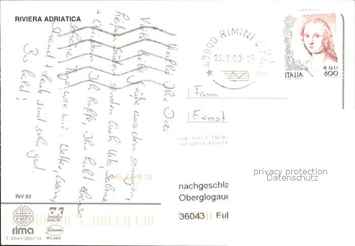 old postcard Rivazzurra Riviera adriatica postalisch gelaufen Erhaltung siehe scans