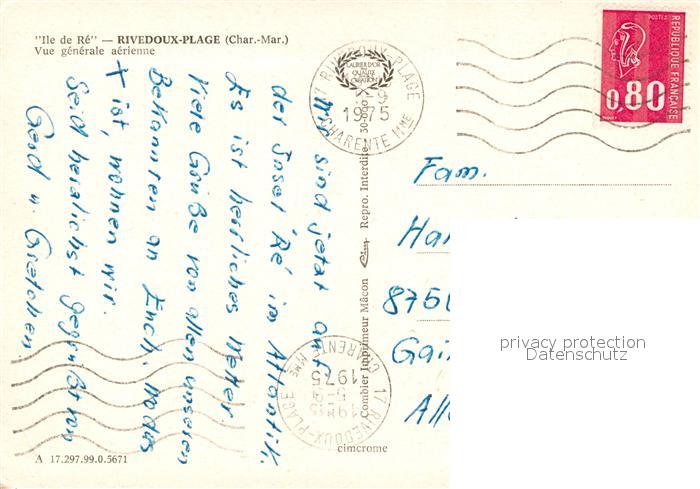 13357234 carte postale Rivedoux-Plage Vue aérienne postalisch gelaufen Erhaltung siehe scans [FriedD77] KatCode: 11170017317297
