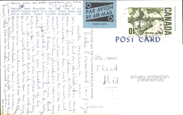 72077204 old postcard Riverdale North Dakota Garrison Dam postalisch gelaufen Erhaltung siehe scans KatCode: 14140360000000