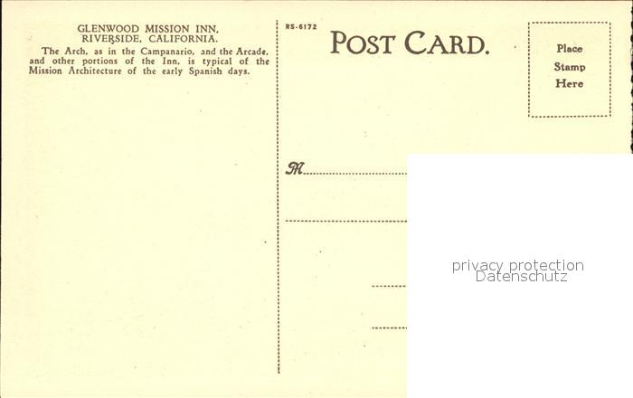 72432374 Riverside California Glenwood Mission Inn postalisch nicht gelaufen Erhaltung siehe scans KatCode: 14140050000000