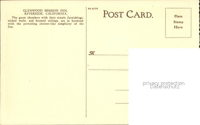 72432370 Riverside California Glenwood Mission Inn postalisch nicht gelaufen Erhaltung siehe scans KatCode: 14140050000000