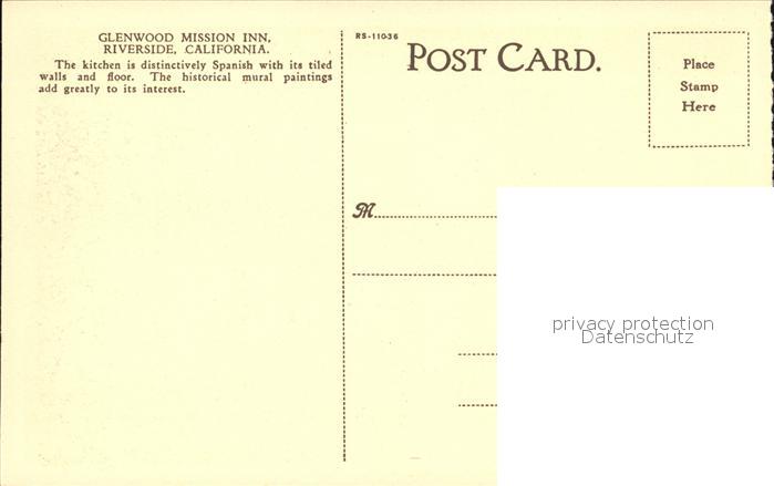 72432371 Riverside California Spanish Kitchen Mission Inn postalisch nicht gelaufen Erhaltung siehe scans KatCode: 14140050000000