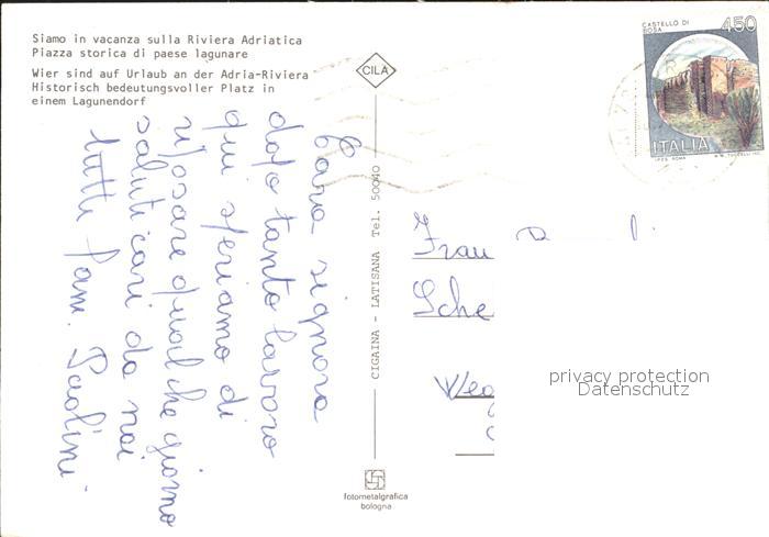 old postcard Riviera Adriatica Hist bedeutender Platz in einem Lagunendorf postalisch gelaufen Erhaltung siehe scans