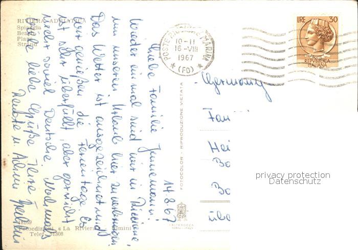 old postcard Riviera Adriatica Strand postalisch gelaufen Erhaltung siehe scans