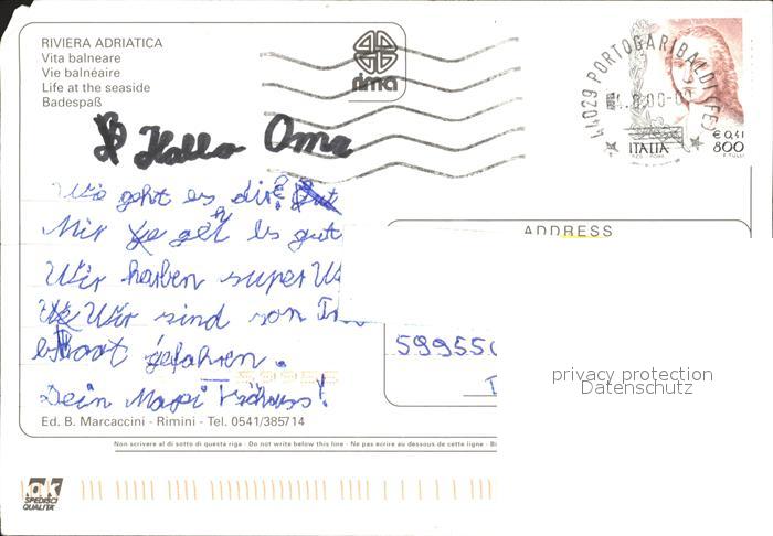 old postcard Riviera Adriatica Vita balneare Strandleben Segeln postalisch gelaufen Erhaltung siehe scans