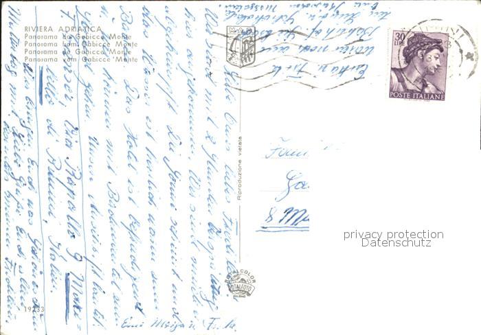 old postcard Riviera Adriatica Vom Berg Gabicce gesehen postalisch gelaufen Erhaltung siehe scans