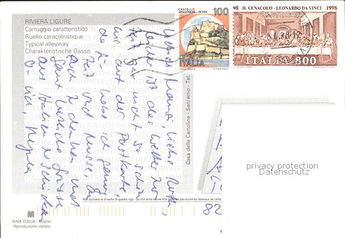 old postcard Riviera di Ligure Carruggio caratteristico postalisch gelaufen Erhaltung siehe scans