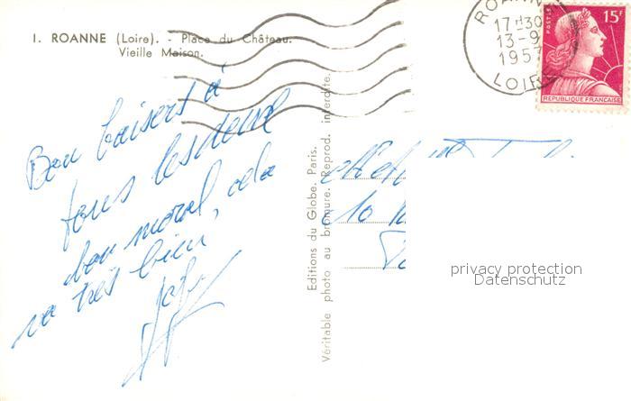 13577857 carte postale Roanne Loire Place du Chateau Vieille Maison postalisch gelaufen Erhaltung siehe scans [WerneD78] KatCode: 11170042242187