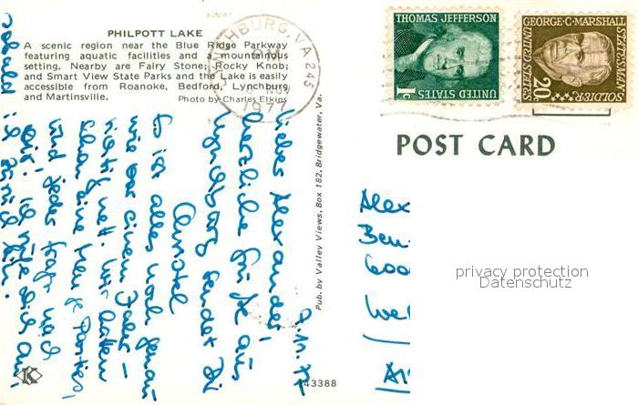 72925329 old postcard Roanoke Virginia Philpott Lake postalisch gelaufen Erhaltung siehe scans [FriedD77] KatCode: 14140490000000