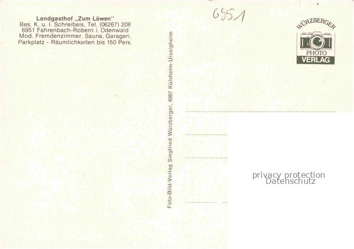 74048235 Robern Fahrenbach Neckar-Odenwald-Kreis BW Landgasthof zum Loewen Gastraeume Panorama postalisch nicht gelaufen Erhaltung siehe scans [FriedD77] KatCode: 11110008225024