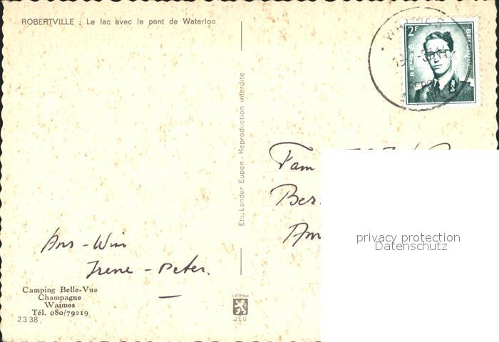 72245295 carte postale Robertville Bruecke postalisch gelaufen Erhaltung siehe scans KatCode: 11070063008092