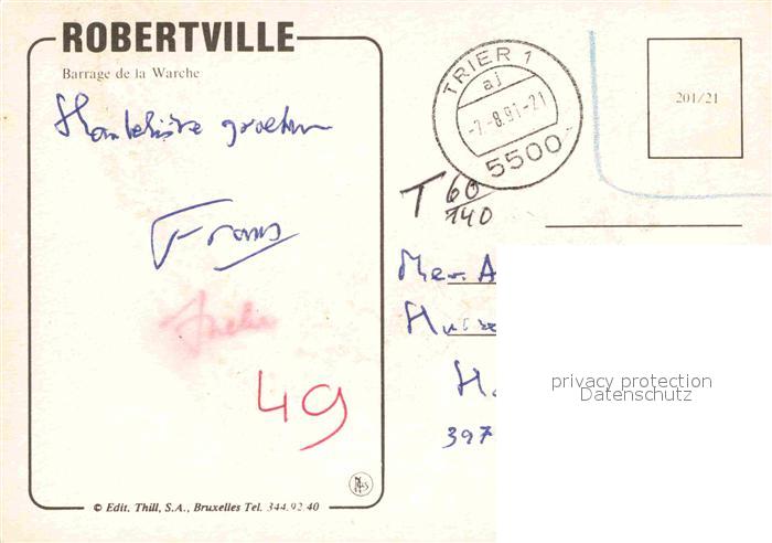 72814094 carte postale Robertville Fliegeraufnahme Barrage de la Warche postalisch gelaufen Erhaltung siehe scans [LiesaD40] KatCode: 11070063008092