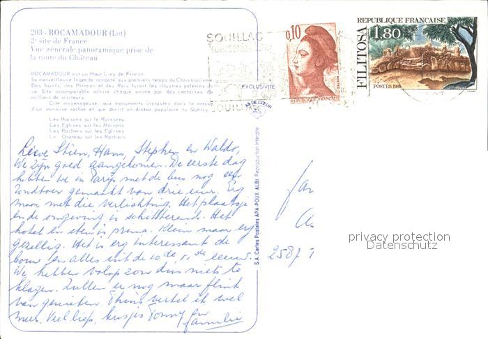 12597679 carte postale Rocamadour postalisch gelaufen Erhaltung siehe scans [LiesaD40] KatCode: 11170046346240