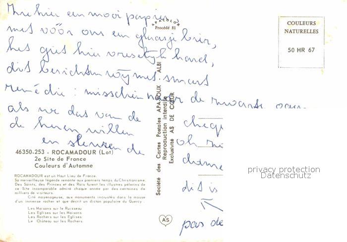 12616061 Rocamadour 2e Site de France Couleurs d Automne postalisch nicht gelaufen Erhaltung siehe scans [WerneD78] KatCode: 11170046346240