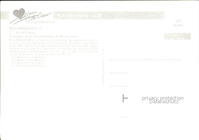 12237228 Rocamadour postalisch nicht gelaufen Erhaltung siehe scans KatCode: 11170046346240