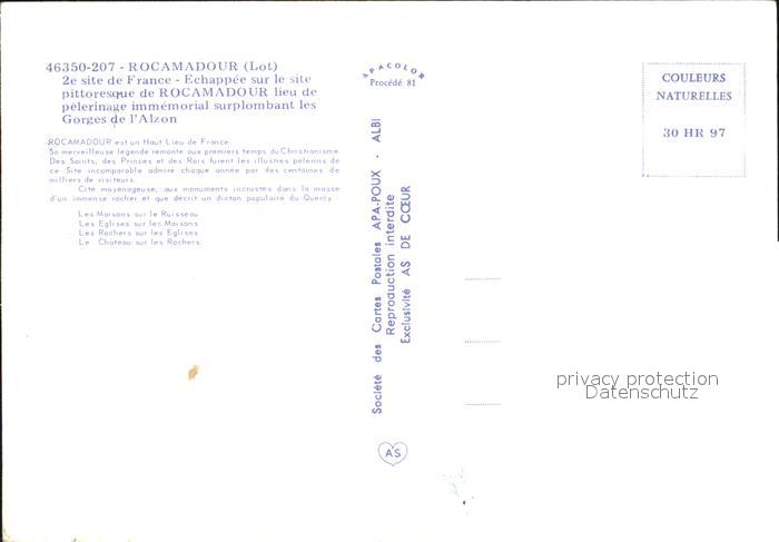12451750 Rocamadour Echappee sur le site postalisch nicht gelaufen Erhaltung siehe scans KatCode: 11170046346240