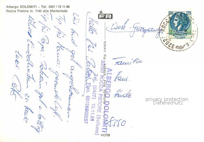 12776591 Rocca Pietore Belluno Veneto IT Albergo Dolomiti postalisch gelaufen Erhaltung siehe scans [WerneD78] alte Postkarte Wern Katcode 11240