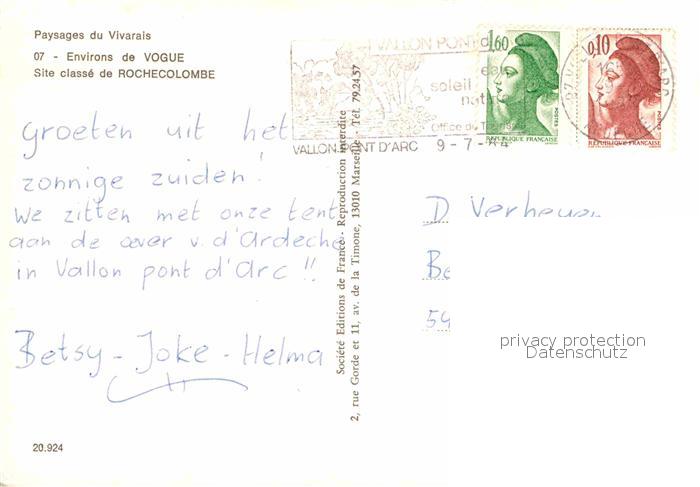 12899131 carte postale Rochecolombe Site classe postalisch gelaufen Erhaltung siehe scans [FriedD77] KatCode: 11170007107190
