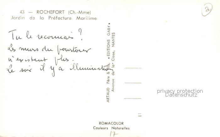 13495026 Rochefort Charente-Maritime Jardin de la Prefecture Maritime postalisch nicht gelaufen Erhaltung siehe scans [FriedD77] KatCode: 11170017217299