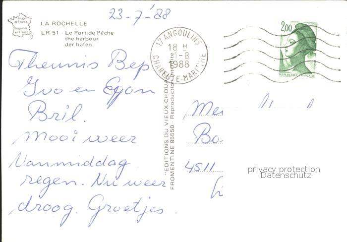 12243183 carte postale Rochelle Charente-Maritime La Port de Peche Hafen postalisch gelaufen Erhaltung siehe scans KatCode: 11170017317300
