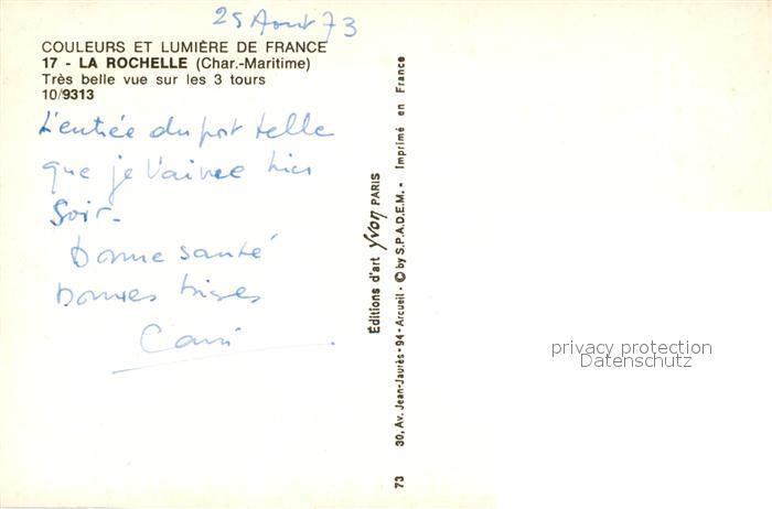 13522593 Rochelle Charente-Maritime La Tres belle vue sur les 3 tours postalisch nicht gelaufen Erhaltung siehe scans [KathaD81] KatCode: 11170017317300