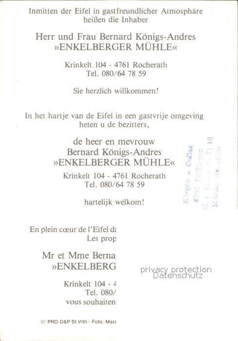 72270541 Rocherath Enkelberger Muehle postalisch nicht gelaufen Werbekarte (keine Postkarte) Erhaltung siehe scans KatCode: 11070063008046