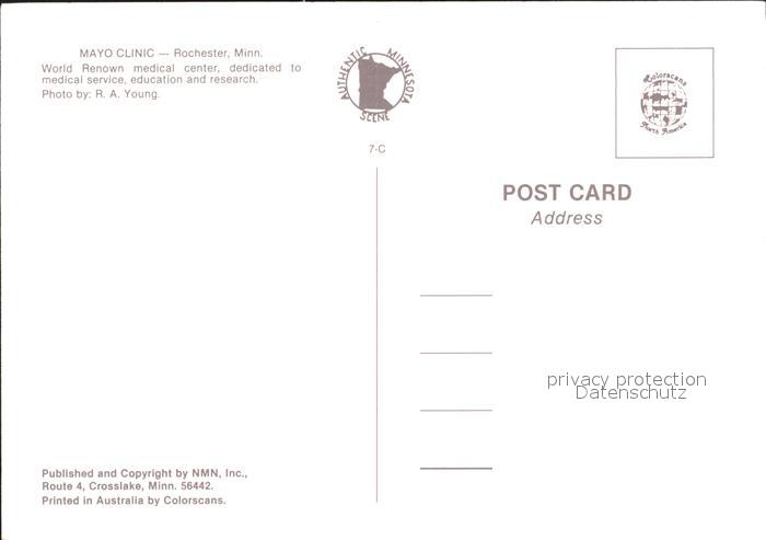 72052709 Rochester Minnesota Mayo Clinic Medical Center postalisch nicht gelaufen Erhaltung siehe scans KatCode: 14140250000000