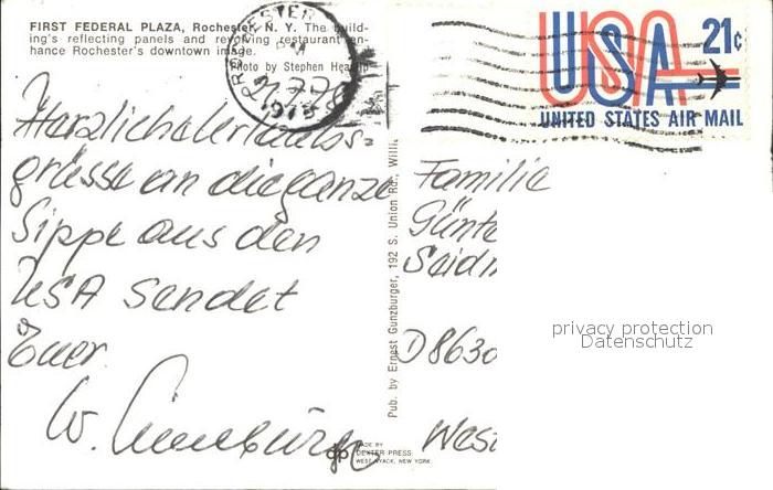 72253120 old postcard Rochester New York First Federal Plaza postalisch gelaufen Erhaltung siehe scans KatCode: 14140340000000