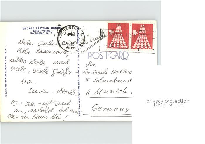 72472532 old postcard Rochester New York George Eastman House East Avenue postalisch gelaufen Erhaltung siehe scans KatCode: 14140340000000