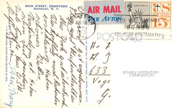 72769317 old postcard Rochester New York Main Street postalisch gelaufen Erhaltung siehe scans [AndreD76] KatCode: 14140340000000