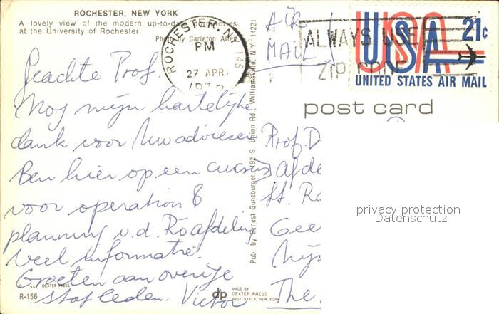 72497791 old postcard Rochester New York University postalisch gelaufen Erhaltung siehe scans KatCode: 14140340000000