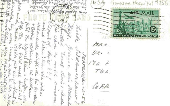 73972912 old postcard Rochester New York USA Genesee Hospital postalisch gelaufen Erhaltung siehe scans [FriedD77] KatCode: 14140340000000