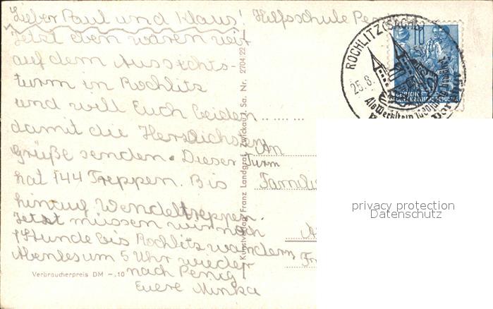 72397172 alte Postkarte Rochlitz Sachsen Aussichtsturm postalisch gelaufen Erhaltung siehe scans KatCode: 11110014182350