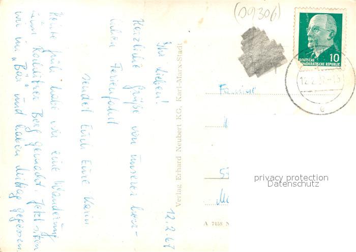 73140288 alte Postkarte Rochlitz Sachsen Blick zum Schloss Aussichtsturm Rochlitzer Berg Landwirtschaftsschule Stadtpanorama Mulde postalisch gelaufen Erhaltung siehe scans [FriedD77] KatCode: 11110014182350