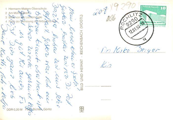 73907771 alte Postkarte Rochlitz Sachsen Hermann Matern Oberschule Am Muehlgraen Blick von der Lichten Jupe Platz der Befreiung postalisch gelaufen Erhaltung siehe scans [FriedD77] KatCode: 11110014182350