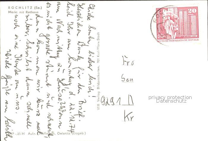 72339310 alte Postkarte Rochlitz Sachsen Markt Rathaus postalisch gelaufen Erhaltung siehe scans KatCode: 11110014182350