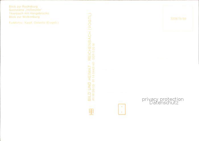 72519080 Rochsburg Thierbach Haengebruecke Gaststaette Hoellmuehle Wolkenburg postalisch nicht gelaufen Erhaltung siehe scans KatCode: 11110014182260