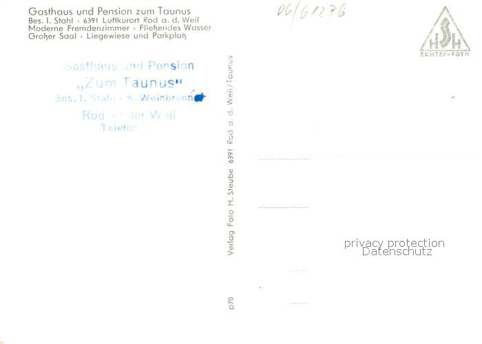 73648839 Rod Weil Gasthaus Pension zum Taunus postalisch nicht gelaufen Erhaltung siehe scans [FriedD77] KatCode: 11110006434013
