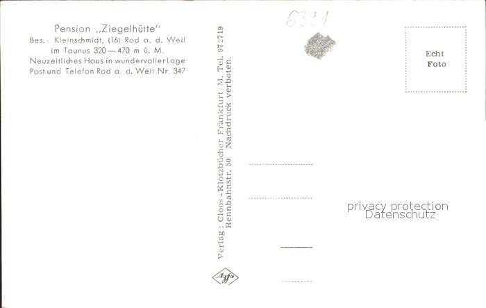 72096987 Rod Weil Pension Ziegelhuette postalisch nicht gelaufen Erhaltung siehe scans KatCode: 11110006434013