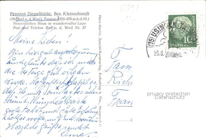 72096982 alte Postkarte Rod Weil Pension Ziegelhuette Gaststube postalisch gelaufen Erhaltung siehe scans KatCode: 11110006434013