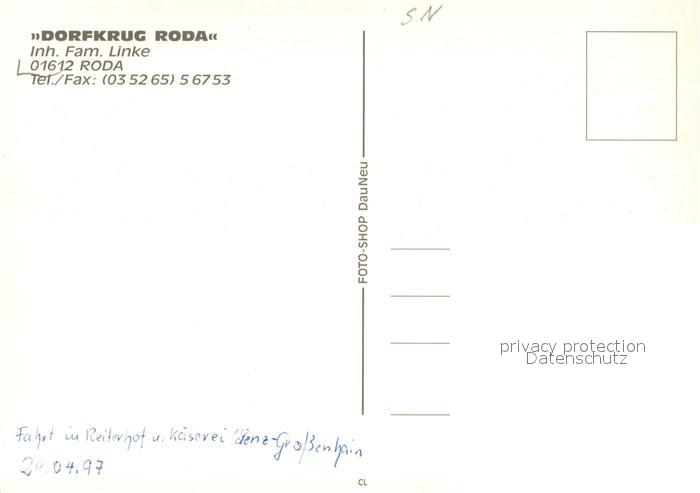 73657869 Roda Nuenchritz Gasthaus Dorfkrug Gaestezimmer Vereinszimmer Saal postalisch nicht gelaufen Erhaltung siehe scans [FriedD77] KatCode: 11110014285190