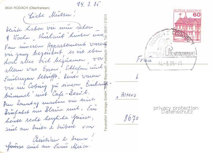 72849115 alte Postkarte Rodach Bad Thermalbad Marktbrunnen postalisch gelaufen Erhaltung siehe scans [AndreD76] KatCode: 11110009473158