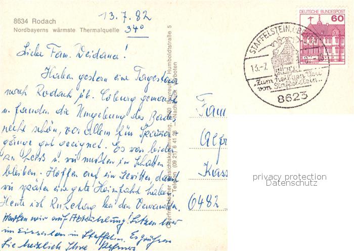73270589 alte Postkarte Rodach Coburg Brunnen Rathaus Panorama Kirche postalisch gelaufen Erhaltung siehe scans [WerneD78] KatCode: 11110009473158