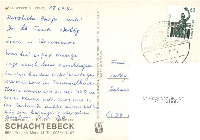 73270585 alte Postkarte Rodach Coburg Marktplatz Brunnen postalisch gelaufen Erhaltung siehe scans [WerneD78] KatCode: 11110009473158