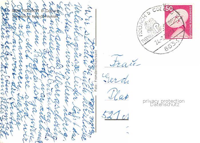 72866810 alte Postkarte Rodach Coburg Thermalbad postalisch gelaufen Erhaltung siehe scans [LiesaD40] KatCode: 11110009473158
