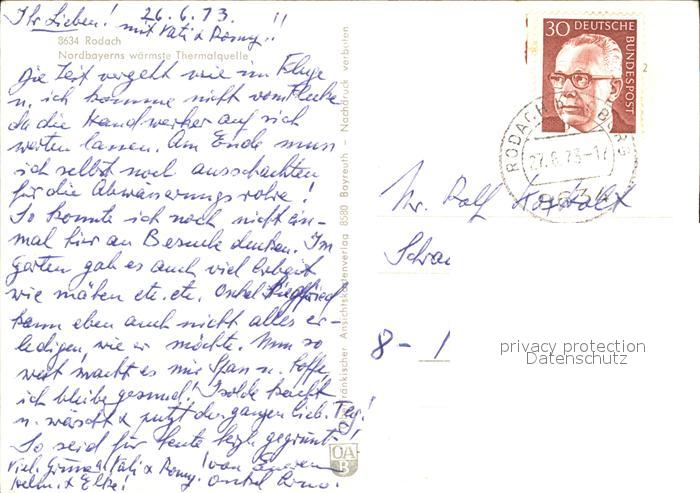 72462028 alte Postkarte Rodach Coburg Thermalquelle postalisch gelaufen Erhaltung siehe scans KatCode: 11110009473158