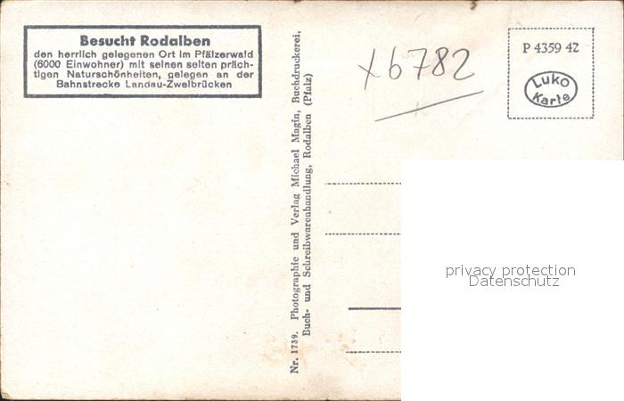 41792992 Rodalben postalisch nicht gelaufen Erhaltung siehe scans KatCode: 11110007340038