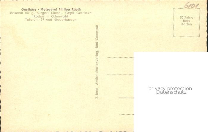 31714835 Rodau Bergstrasse Gasthaus Metzgerei Philipp Rauth postalisch nicht gelaufen Erhaltung siehe scans KatCode: 11110006431022